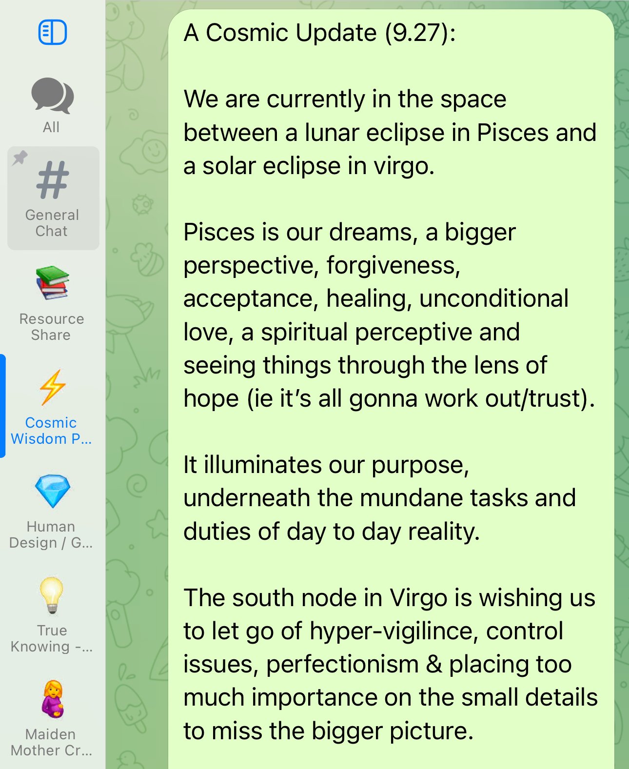 Here, we meet in transparency and love, honoring the cycles of the cosmos and the cycles within ourselves. This space exists to activate remembrance, accelerate awakening, and anchor the new templates of community, sovereignty, and soul-aligned living in the world!